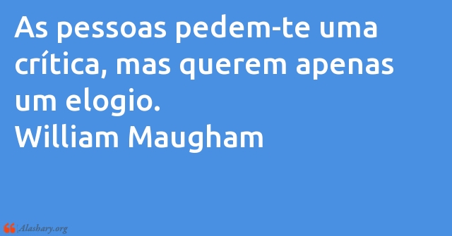 As pessoas pedem-te uma crítica, mas querem apenas um elogio. William Maugham