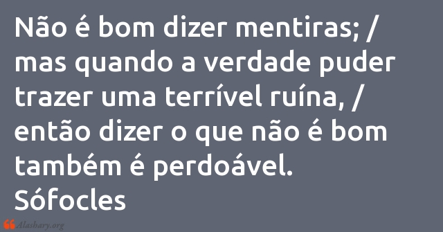 Não é bom dizer mentiras; / mas quando a verdade puder trazer uma terrível ruína, / então dizer o que não é bom também é perdoável. Sófocles
