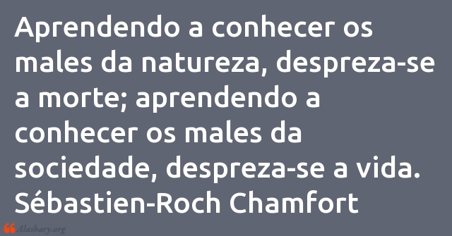 Aprendendo a conhecer os males da natureza, despreza-se a morte; aprendendo a conhecer os males da sociedade, despreza-se a vida.
