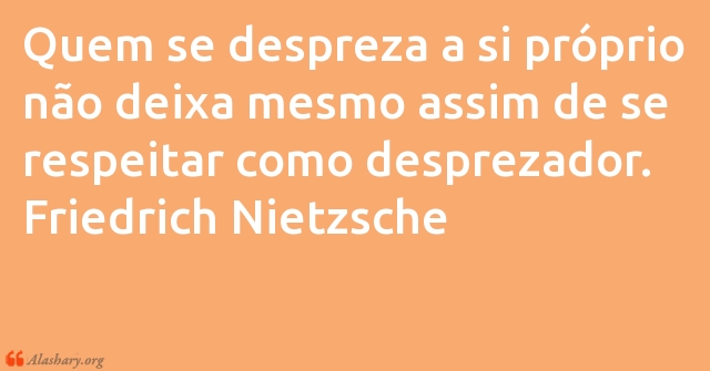 Quem se despreza a si próprio não deixa mesmo assim de se respeitar como desprezador. Friedrich Nietzsche