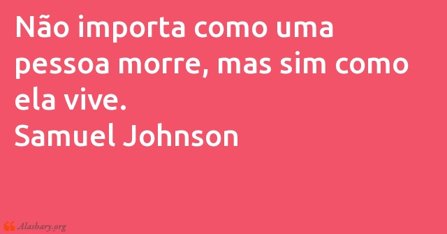 Não importa como uma pessoa morre, mas sim como ela vive. Samuel Johnson
