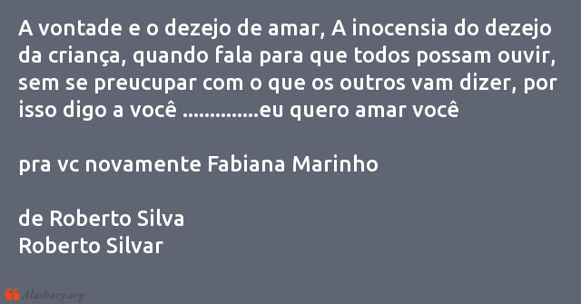 A vontade e o dezejo de amar, A inocensia do dezejo da criança, quando fala para que todos possam ouvir, sem se preucupar com o que os outros vam dizer, por isso digo a você ..............eu quero amar você