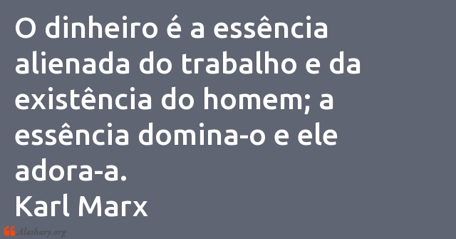 O dinheiro é a essência alienada do trabalho e da existência do homem; a essência domina-o e ele adora-a. Karl Marx