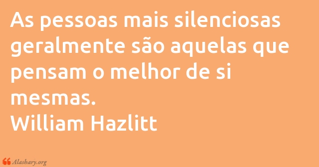 As pessoas mais silenciosas geralmente são aquelas que pensam o melhor de si mesmas. William Hazlitt