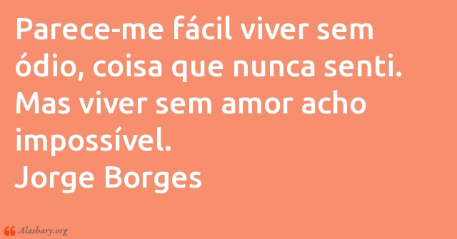 Parece-me fácil viver sem ódio, coisa que nunca senti. Mas viver sem amor acho impossível.
