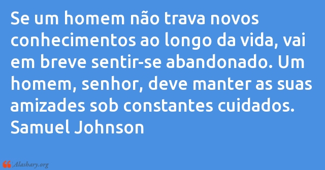 Se um homem não trava novos conhecimentos ao longo da vida, vai em breve sentir-se abandonado. Um homem, senhor, deve manter as suas amizades sob constantes cuidados.