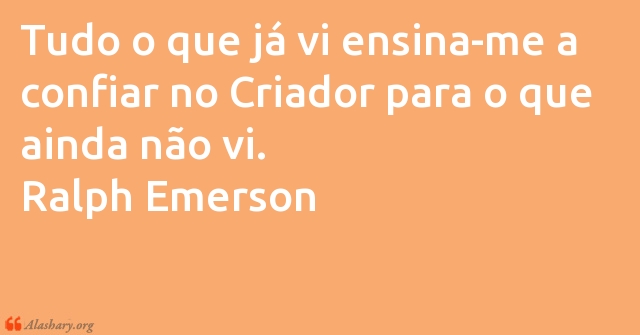 Tudo o que já vi ensina-me a confiar no Criador para o que ainda não vi. Ralph Emerson