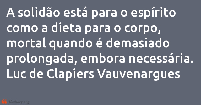 A solidão está para o espírito como a dieta para o corpo, mortal quando é demasiado prolongada, embora necessária. Luc de Clapiers Vauvenargues