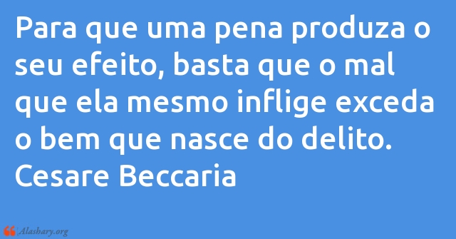 Para que uma pena produza o seu efeito, basta que o mal que ela mesmo inflige exceda o bem que nasce do delito.