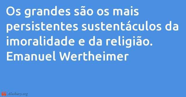 Os grandes são os mais persistentes sustentáculos da imoralidade e da religião. Emanuel Wertheimer
