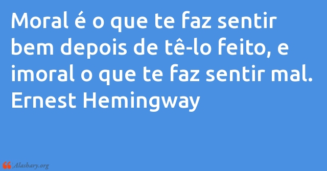 Moral é o que te faz sentir bem depois de tê-lo feito, e imoral o que te faz sentir mal. Ernest Hemingway