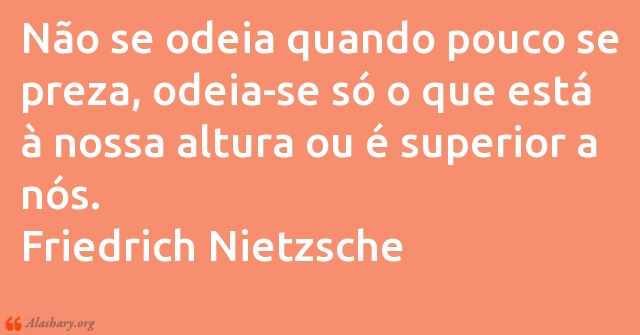Não se odeia quando pouco se preza, odeia-se só o que está à nossa altura ou é superior a nós. Friedrich Nietzsche