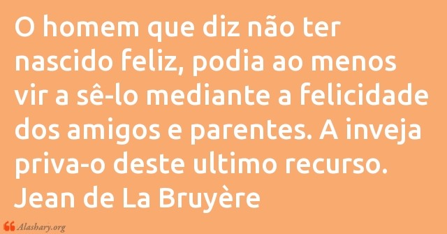O homem que diz não ter nascido feliz, podia ao menos vir a sê-lo mediante a felicidade dos amigos e parentes. A inveja priva-o deste ultimo recurso.