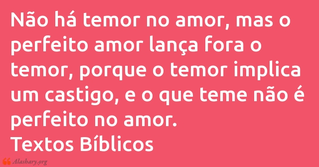 Não há temor no amor, mas o perfeito amor lança fora o temor, porque o temor implica um castigo, e o que teme não é perfeito no amor.