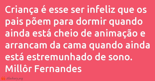 Criança é esse ser infeliz que os pais põem para dormir quando ainda está cheio de animação e arrancam da cama quando ainda está estremunhado de sono. Millôr Fernandes