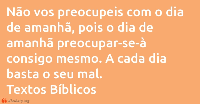 Não vos preocupeis com o dia de amanhã, pois o dia de amanhã preocupar-se-à consigo mesmo. A cada dia basta o seu mal.