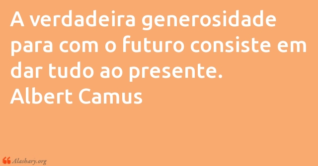 A verdadeira generosidade para com o futuro consiste em dar tudo ao presente. Albert Camus