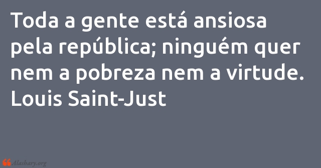 Toda a gente está ansiosa pela república; ninguém quer nem a pobreza nem a virtude. Louis Saint-Just