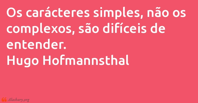 Os carácteres simples, não os complexos, são difíceis de entender. Hugo Hofmannsthal