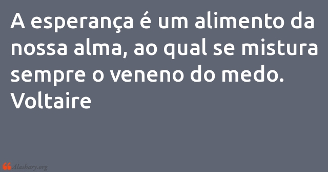 A esperança é um alimento da nossa alma, ao qual se mistura sempre o veneno do medo. Voltaire