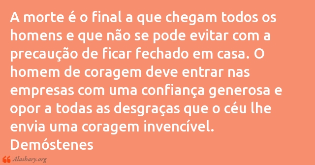 A morte é o final a que chegam todos os homens e que não se pode evitar com a precaução de ficar fechado em casa. O homem de coragem deve entrar nas empresas com uma confiança generosa e opor a todas as desgraças que o céu lhe envia uma coragem invencível.