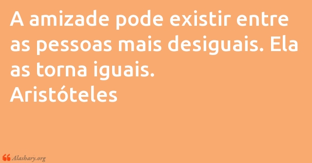 A amizade pode existir entre as pessoas mais desiguais. Ela as torna iguais.