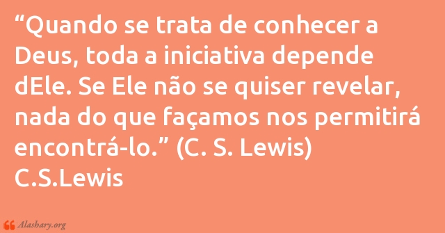 “Quando se trata de conhecer a Deus, toda a iniciativa depende dEle. Se Ele não se quiser revelar, nada do que façamos nos permitirá encontrá-lo.” (C. S. Lewis)