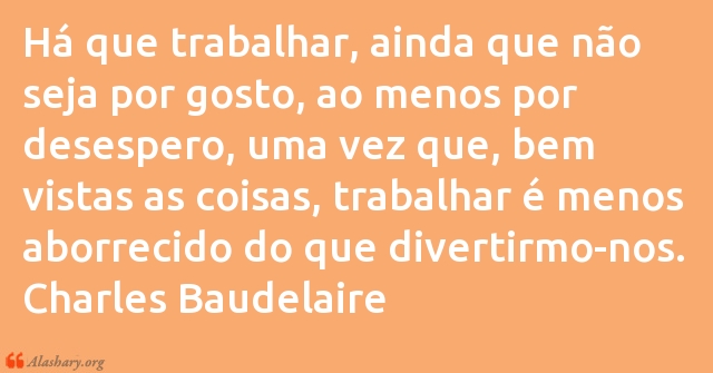 Há que trabalhar, ainda que não seja por gosto, ao menos por desespero, uma vez que, bem vistas as coisas, trabalhar é menos aborrecido do que divertirmo-nos. Charles Baudelaire