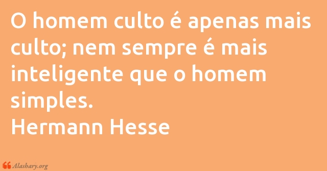 O homem culto é apenas mais culto; nem sempre é mais inteligente que o homem simples. Hermann Hesse