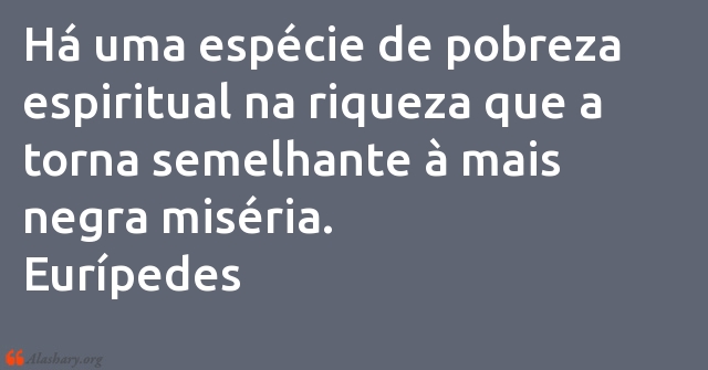 Há uma espécie de pobreza espiritual na riqueza que a torna semelhante à mais negra miséria. Eurípedes