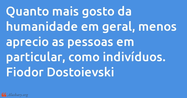 Quanto mais gosto da humanidade em geral, menos aprecio as pessoas em particular, como indivíduos. Fiodor Dostoievski