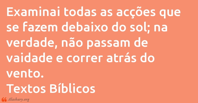 Examinai todas as acções que se fazem debaixo do sol; na verdade, não passam de vaidade e correr atrás do vento.