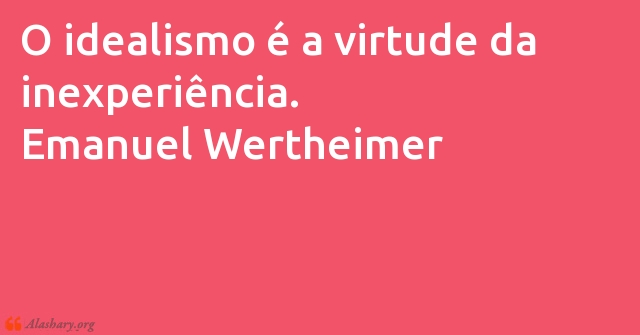 O idealismo é a virtude da inexperiência. Emanuel Wertheimer