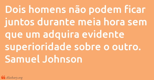 Dois homens não podem ficar juntos durante meia hora sem que um adquira evidente superioridade sobre o outro. Samuel Johnson