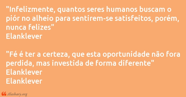 "Infelizmente, quantos seres humanos buscam o piór no alheio para sentirem-se satisfeitos, porém, nunca felizes"