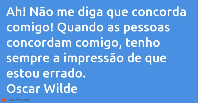 Ah! Não me diga que concorda comigo! Quando as pessoas concordam comigo, tenho sempre a impressão de que estou errado.
