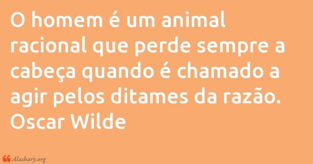 O homem é um animal racional que perde sempre a cabeça quando é chamado a agir pelos ditames da razão. Oscar Wilde