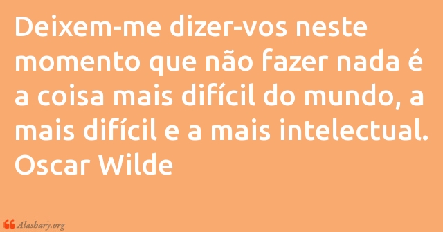 Deixem-me dizer-vos neste momento que não fazer nada é a coisa mais difícil do mundo, a mais difícil e a mais intelectual.
