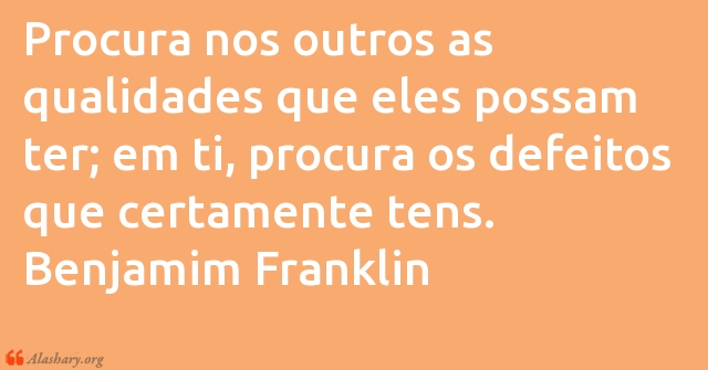 Procura nos outros as qualidades que eles possam ter; em ti, procura os defeitos que certamente tens. Benjamim Franklin