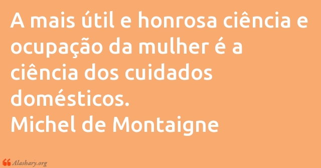 A mais útil e honrosa ciência e ocupação da mulher é a ciência dos cuidados domésticos. Michel de Montaigne