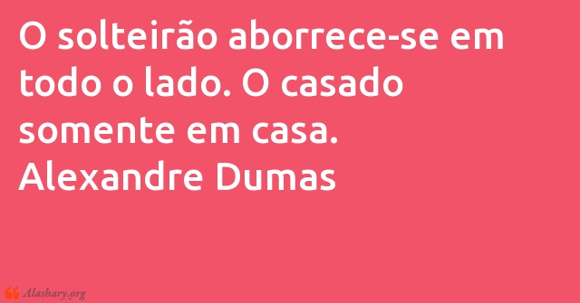 O solteirão aborrece-se em todo o lado. O casado somente em casa. Alexandre Dumas