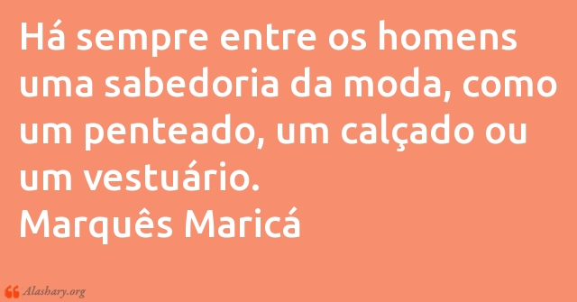 Há sempre entre os homens uma sabedoria da moda, como um penteado, um calçado ou um vestuário. Marquês Maricá