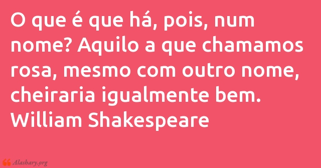 O que é que há, pois, num nome? Aquilo a que chamamos rosa, mesmo com outro nome, cheiraria igualmente bem.