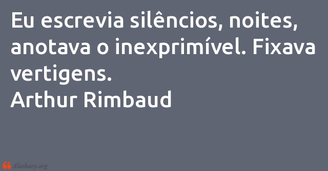 Eu escrevia silêncios, noites, anotava o inexprimível. Fixava vertigens. Arthur Rimbaud
