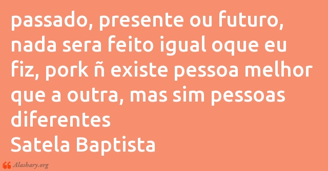 passado, presente ou futuro, nada sera feito igual oque eu fiz, pork ñ existe pessoa melhor que a outra, mas sim pessoas diferentes