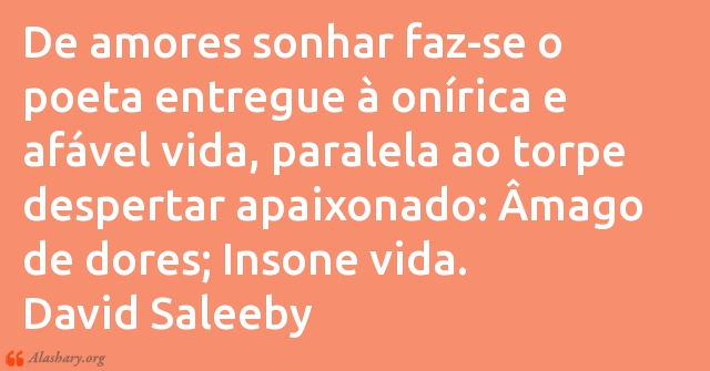 De amores sonhar faz-se o poeta entregue à onírica e afável vida, paralela ao torpe despertar apaixonado: Âmago de dores; Insone vida. David Saleeby