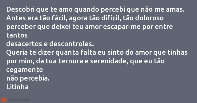 Queria te dizer quanta falta eu sinto do amor que tinhas