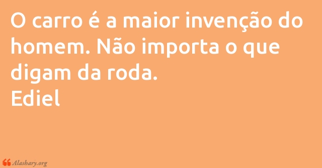 O carro é a maior invenção do homem. Não importa o que digam da roda. Ediel