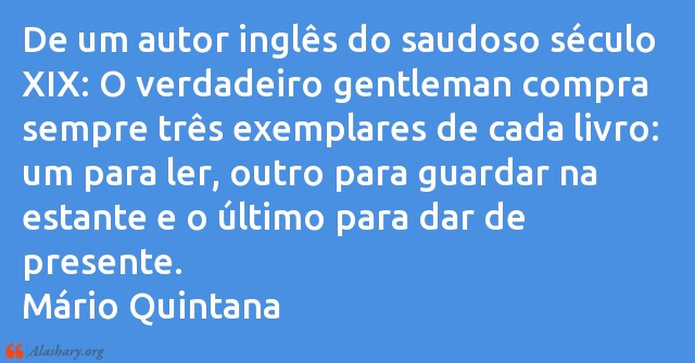 De um autor inglês do saudoso século XIX: O verdadeiro gentleman compra sempre três exemplares de cada livro: um para ler, outro para guardar na estante e o último para dar de presente.
