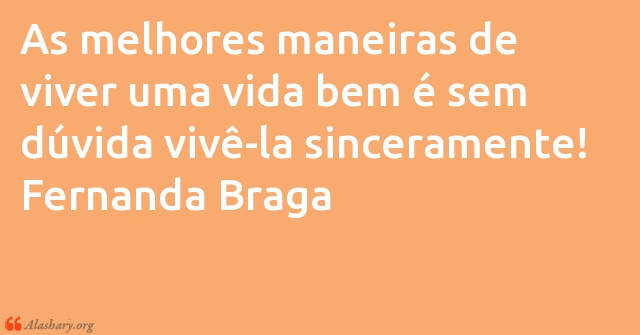 As melhores maneiras de viver uma vida bem é sem dúvida vivê-la sinceramente! Fernanda Braga